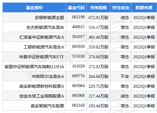 其中持有数量最多的基金为农银新能源主题,目前规模为224.34亿元,最新净值4.1593(6月23日),较上一交易日上涨2.77%,近一年上涨24.4%。该基金现任基金经理为邢军亮。